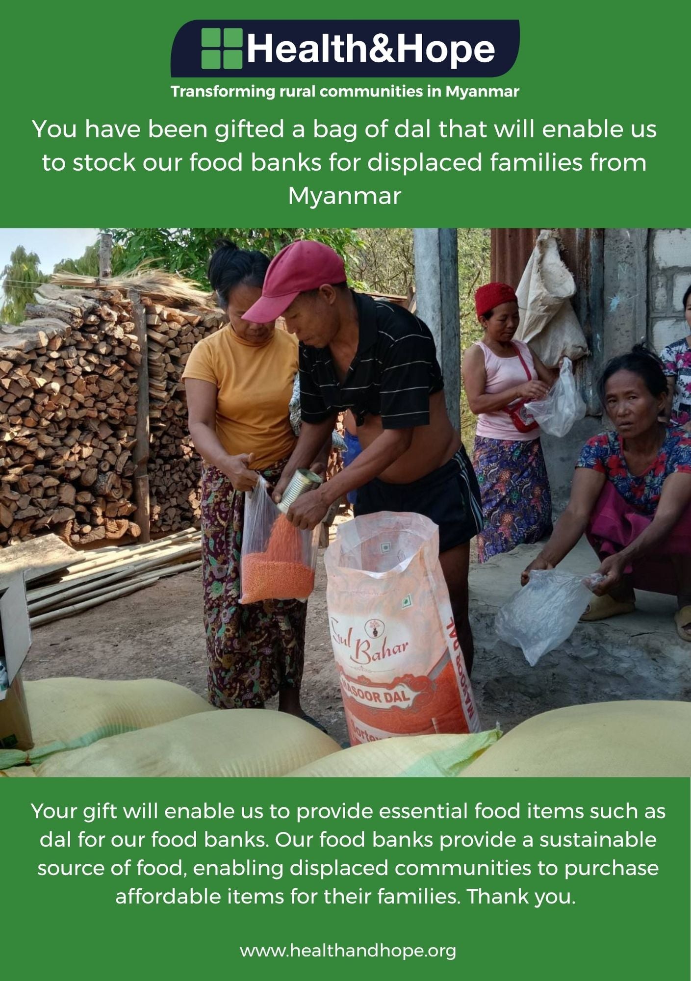 Your gift will enable us to provide essential food items such as dal for our food banks.